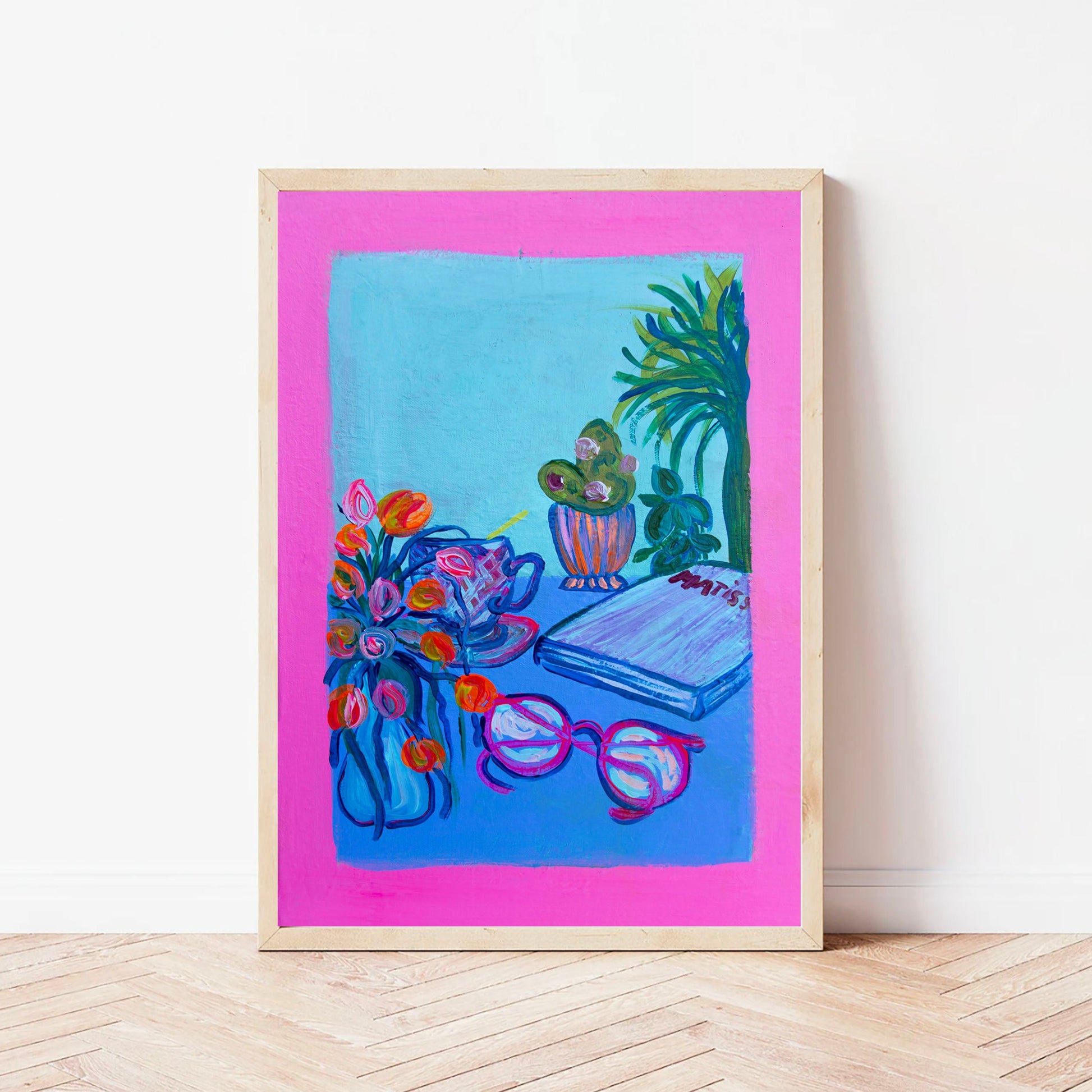 This vibrant still life is inspired by the artist's home and painters such as David Hockney.