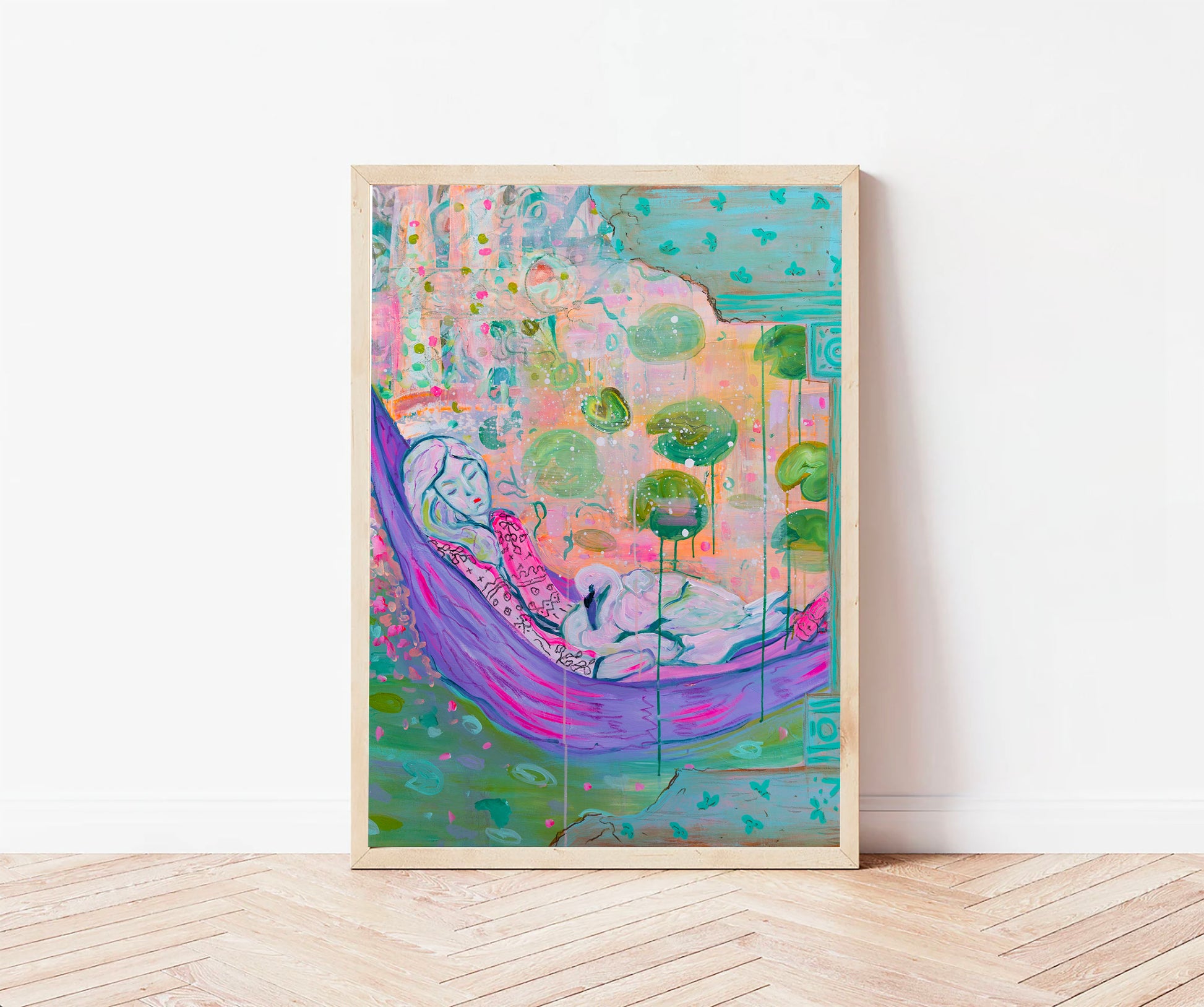 Art print of Woman Sleeping with Swan